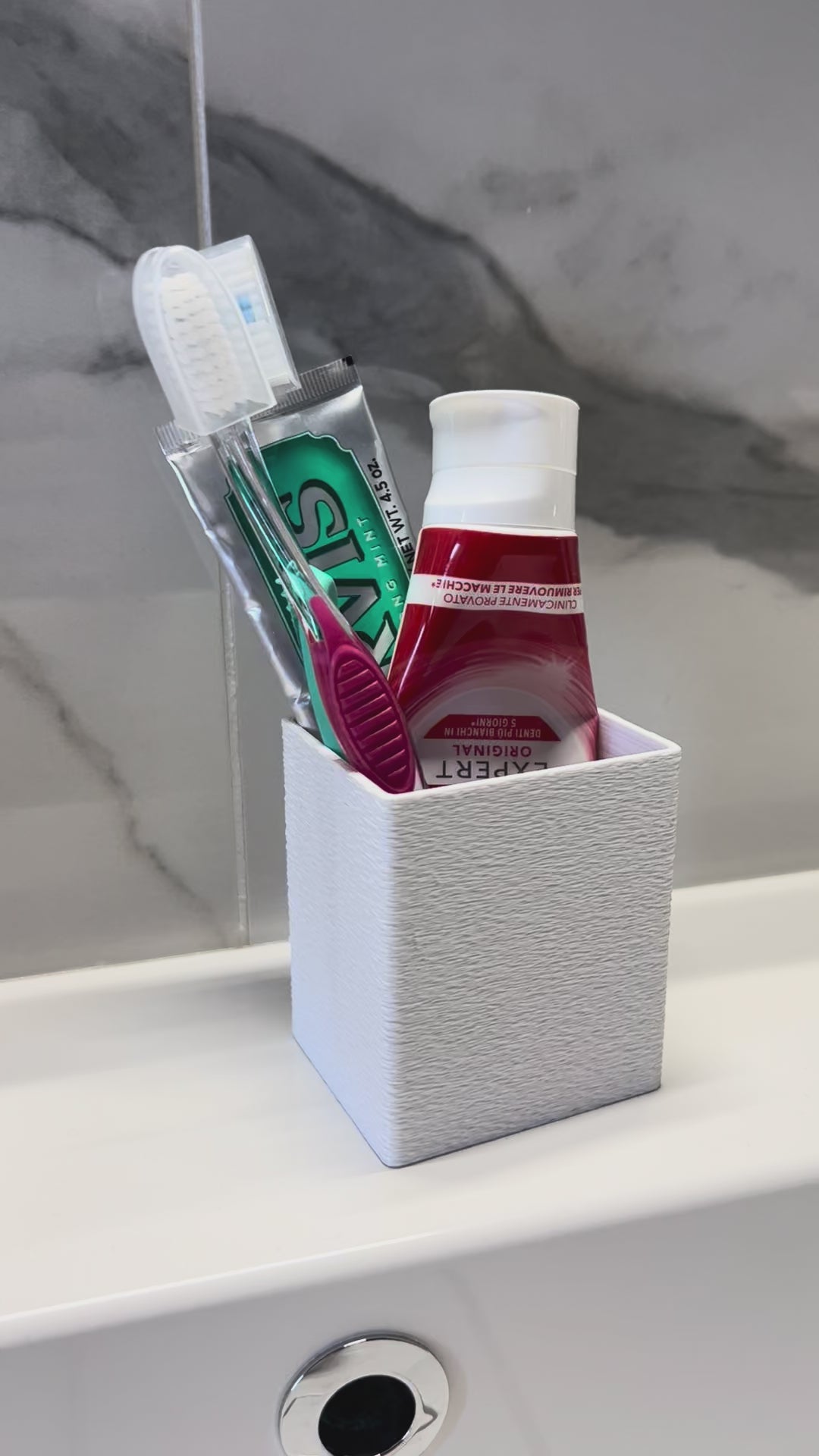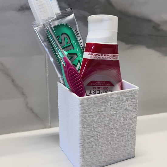 Organizza il tuo bagno con stile. Questo contenitore per spazzolino e dentifricio è realizzato tramite stampa 3D, con un design moderno e funzionale che mantiene tutto in ordine e a portata di mano. Compatto, resistente e leggero, è ideale per l’uso quotidiano a casa.